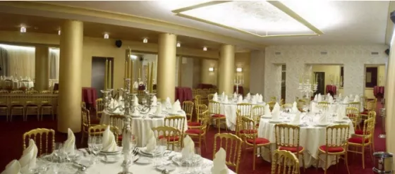 Ресторан специализируется на проведении банкетов и праздничных мероприятий в режиме банкетного зала. Банкетный зал рассчитан на 80-90 посадочных мест с возможностью комфортного размещения и проведения танцевально-развлекательной программы, и предполагает максимальное размещение в количестве 150 посадочных мест.