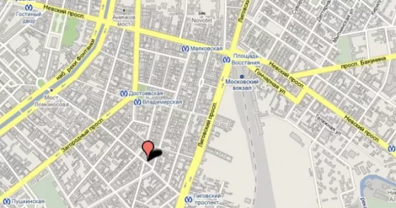 Ресторан находится в Центральном районе г. Санкт-Петербурга, в оживленном месте, на старинной улице в окружении памятников архитектуры, в шаговой доступности: площадь «Пяти углов», «Владимирский собор» и «Кузнечный» рынок. В непосредственной близости проходят крупнейшие городские транспортные магистрали: Лиговский пр-т, ул. Марата, Загородный проспект, а также неподалеку находятся три станции метрополитена: «Достоевская», «Владимирская», «Лиговский пр-т». Ресторан располагается в доме постройки 1956 года и занимает большую часть первого этажа. Также в этом доме находится управление МЧС РФ, занимающее значительную часть площадей в доме и над рестораном. Непосредственно к дому примыкает новый бизнес-центр класса B+ напротив дома через дорогу находится «Ямской пассаж»