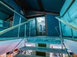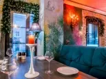 Первый этаж площадью 168 квадратных метров имеет парадный вход с набережной канала Грибоедова. Высота потолков – 3 метра. В настоящее время здесь расположен ресторан, интерьер которого выполнен в классическом стиле с использованием материалов высочайшего качества: мрамор, гранит, дерево ценных пород, текстиль. Большие арочные окна основного зала пропускают много света и открывают прямой вид на воду и на набережную канала Грибоедова. На второй этаж ведет изящная лестница из итальянского мрамора коллекции «New York», окруженная коваными перилами. Между первым и вторым этажами находится антресольный этаж площадью 112 квадратных метров. Здесь расположена кухня ресторана, оснащенная современным оборудованием, в том числе лифтовыми подъемниками для подачи блюд. Второй этаж – это территория клуба площадью 540 квадратных метров, которая включает в себя большую сцену, танцпол, зал для зрителей, барную стойку и помещение кафе. Окна выходят на набережную канала Грибоедова. В ближайшей перспективе ожидается согласование летнего кафе, расположенного прямо на крыше первого этажа с выходом из зала танцпола. Сцена и танцевальный зал оснащены профессиональным звуковым и световым оборудованием, которое позволяет выступать артистам самого высокого уровня. Мансардный этаж площадью 205 квадратных метров. Также имеется подвал площадью 48 квадратных метров.