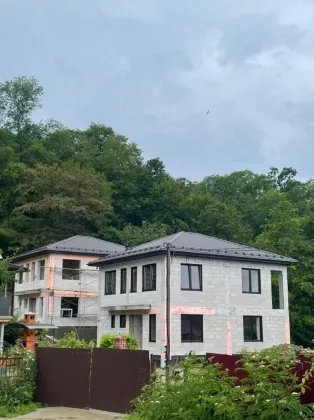 Территория дома огорожена по периметру, территория дома разграничена зелеными насаждениями (туи). Установлены автоматические въездные ворота, закладные под видеонаблюдение.