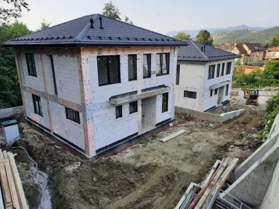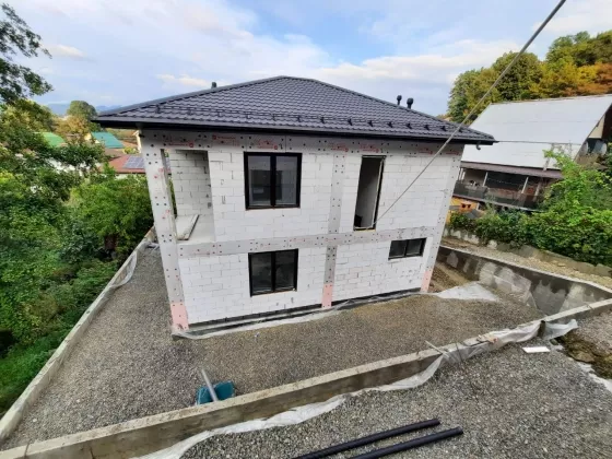 монолитно-каркасный дом с опиранием на свайный фундамент, стены из газобетонного блока толщиной 30см марки D500.