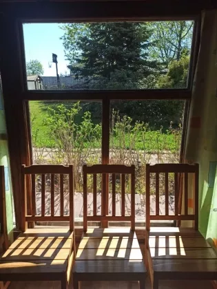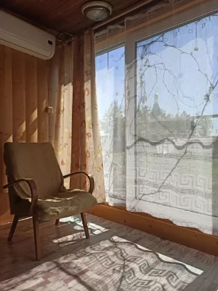 На участке находится летний дом, в котором расположились кухня, с/у с просторной сауной, жилые комнаты с панорамным остеклением, выходящим на сад и смотрящим, также, на церковную маковку.