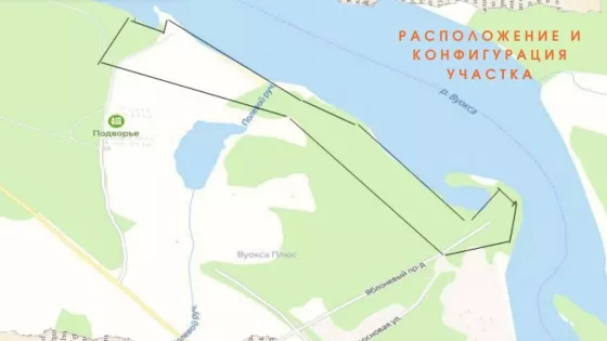 Земельный участок, 11 га пляжной и лесной полосы на берегу реки Вуоксы, в составе которого 2 км своего песчаного берега, и жемчужина Вуоксы – песчаный мыс Крючок.